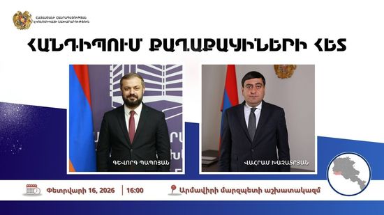 ՀՀ էկոնոմիկայի նախարար Գևորգ Պապոյանը և Արմավիրի մարզպետ Վահրամ Խաչատրյանը կհանդիպեն քաղաքացիների հետ